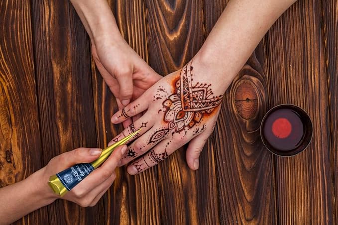 - IMPORTANT NOTE: Color will not show immediately since our henna is all natural. Color will take 24-48 hours to fully darken. The longer it is left on, the darker the color! Before applying henna, make sure that your hands should be dry, There should not be any kind of moisturizer or cream applied on the hands.