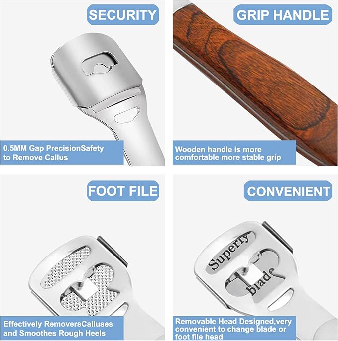 - HIGH GRADE MATERIAL: Untrytb foot shaver is made of high quality polish stainless steel and solid wood, it is sturdy and will not deform, built to last