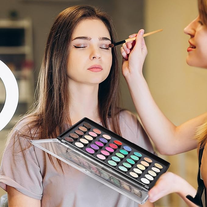 - 【A Match Made in Makeup Heaven】-- These solidly constructed palettes feature an open magnetic interior. Encased by a clear lid to prevent water and dust, and allows you to see all of your shades at a glance! The palettes are reuse-able and easy to clean. Perfect for replacing your favorite shades or trying new ones. (NOTE: NOT INCLUDED Metal Stickers & Small Magnetic Pans.)