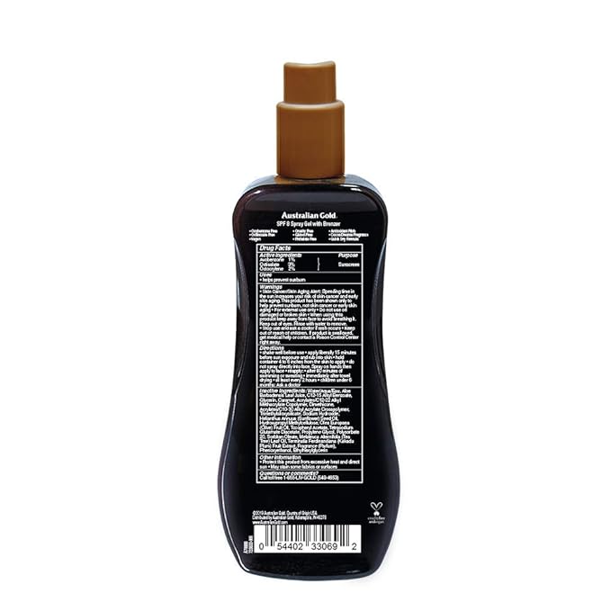 Australian Gold Spray Gel Sunscreen with Instant Bronzer SPF 8, 8 Ounce | Moisturize & Hydrate Skin | Broad Spectrum | Water Resistant | Non-Greasy | Oxybenzone Free | Cruelty Free