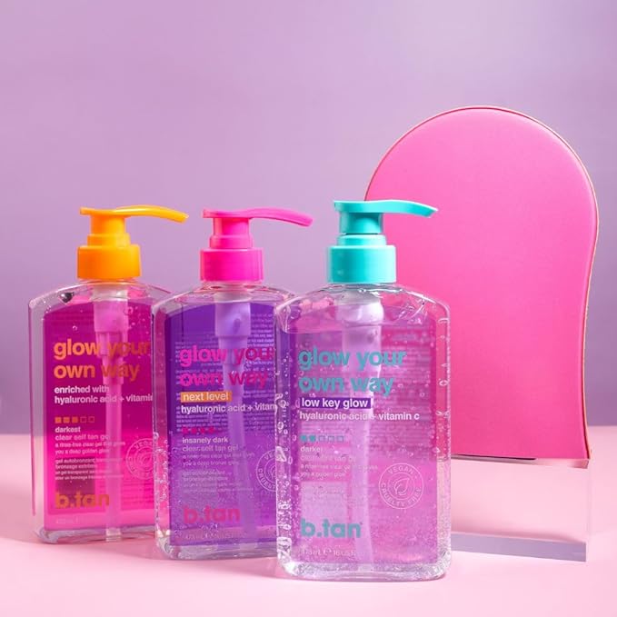 - BEST PRACTICE. pump a small amount of our glow your own way self tan gel onto the mitt. use the spongy, smooth side to rub all over your body in circular motions. finish off with the velvety side to buff your tan to flawless perfect... all for the best, glowiest tan possible.
