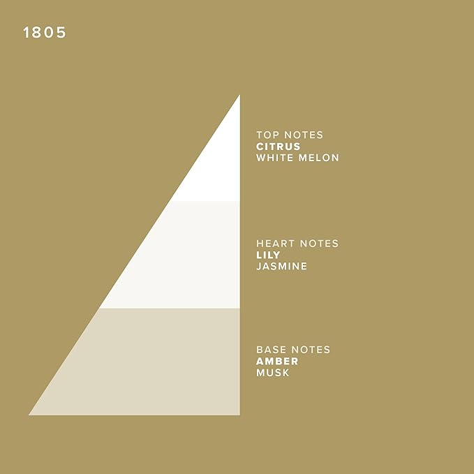 - 1805: A fresh oceanic fragrance with top notes of Bergamot, Mandarin, and Cardamon, combined with a Lavender, Geranium, and Clary Sage heart resting on a Sandalwood, Cedar Wood, and Musk base