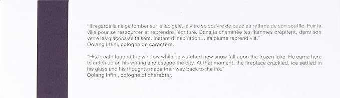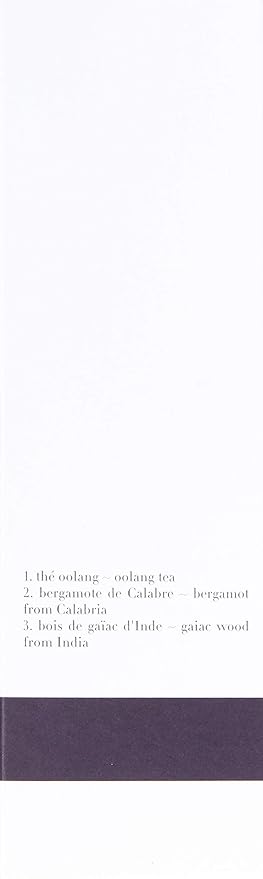 - Scent : Bergamot, Tunisian neroli, oolong tea, blond leather, tobacco blossom, guaiac wood, vetiver
