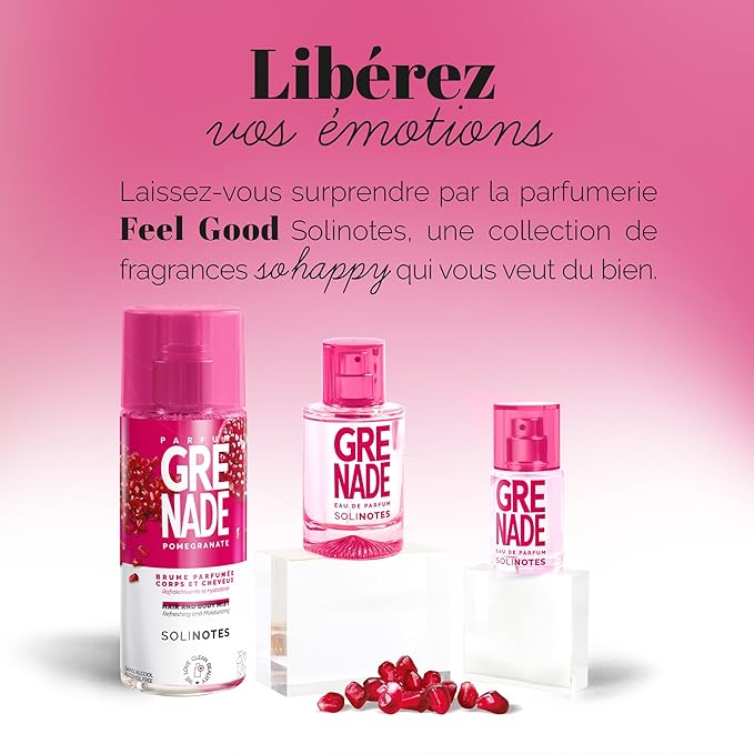 - šš Radiate Positivity: Much like a fresh gesture on a hot summer day, Solinotes' Grenade Eau de Parfum offers you lightness and enthusiasm. Relish the gourmand notes of pomegranate paired with blackberry, rounded off by the comforting aroma of musk. An enchanting elixir for absolute joy, Grenade is an essential addition to the realm of women's fragrances and women perfume collections.