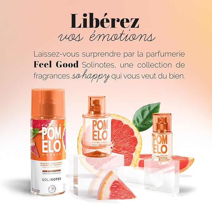 - šš Tangy Delight with a Touch of Elegance: Dive into the refreshing blend of citrus notes combined with the robustness of Pomelo, letting the delightful fusion act as your daily dose of positivity. Let the Jasmine and Melon embrace you with their uplifting charm, all culminating in the sophisticated embrace of Cedarwood and Musk. Solinotes' Pomelo Eau de Parfum truly captures the essence of joy and lightness,