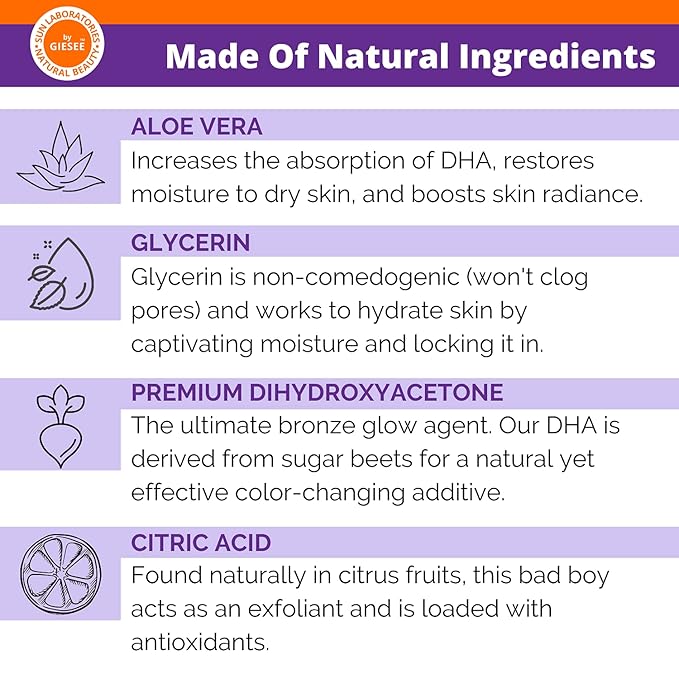 - NATURAL: Made with natural, paraben-free ingredients like vitamin E, vitamin C, and aloe to provide your skin with the most natural-looking and best tan possible while leaving your skin feeling refreshed
