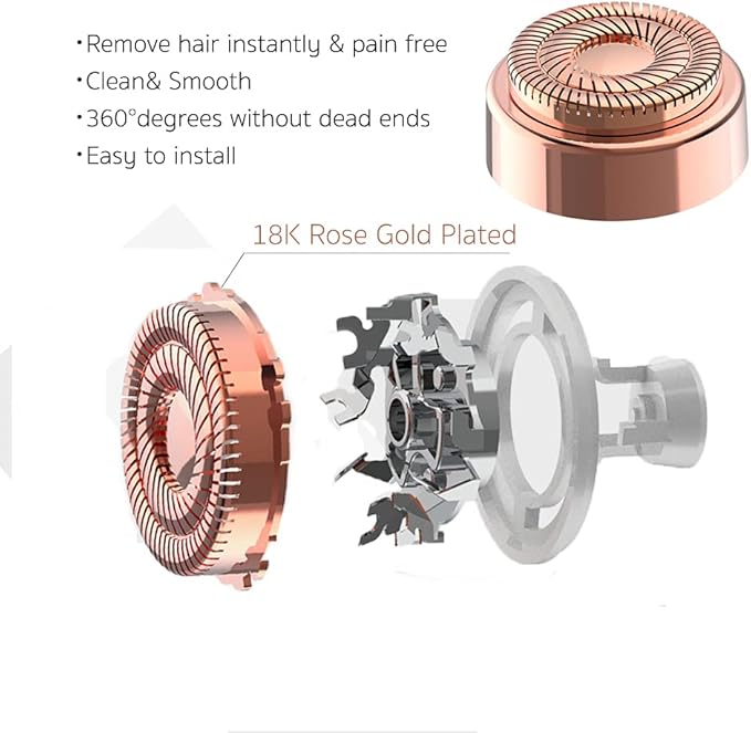 - 18K-gold plating of the tuokiy replacement head is providing the feature of hypoallergenic. You can removes your facial fair smoother and feel more comfortable with the Special Designed blade cover for smooth and painless hair removal.