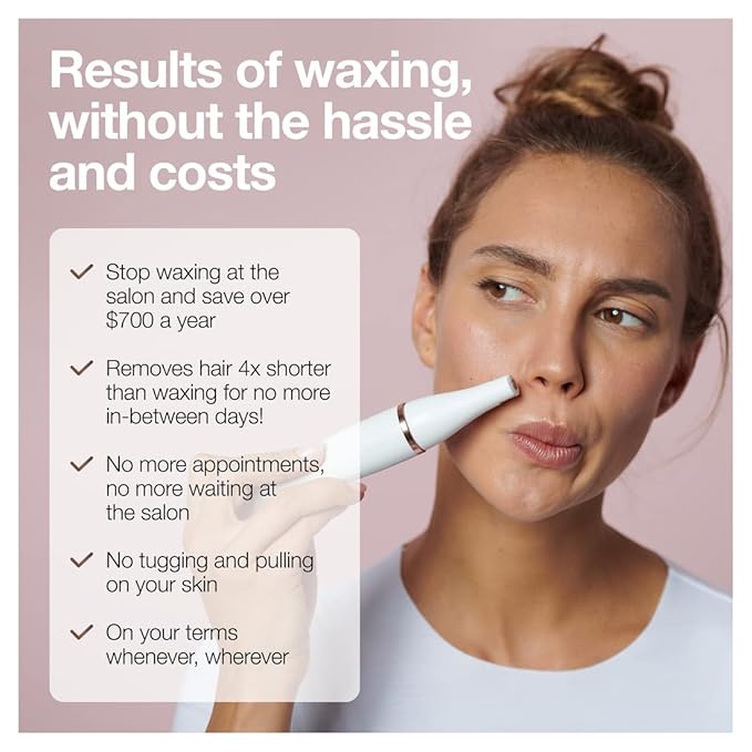 - Facial epilator removes 4x shorter hair than wax for a smooth, clear complexion