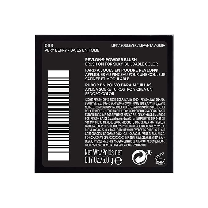 Revlon Powder Blush Face Makeup, High Impact Buildable Color, Lightweight & Smooth Finish, 033 Very Berry, 0.17 oz