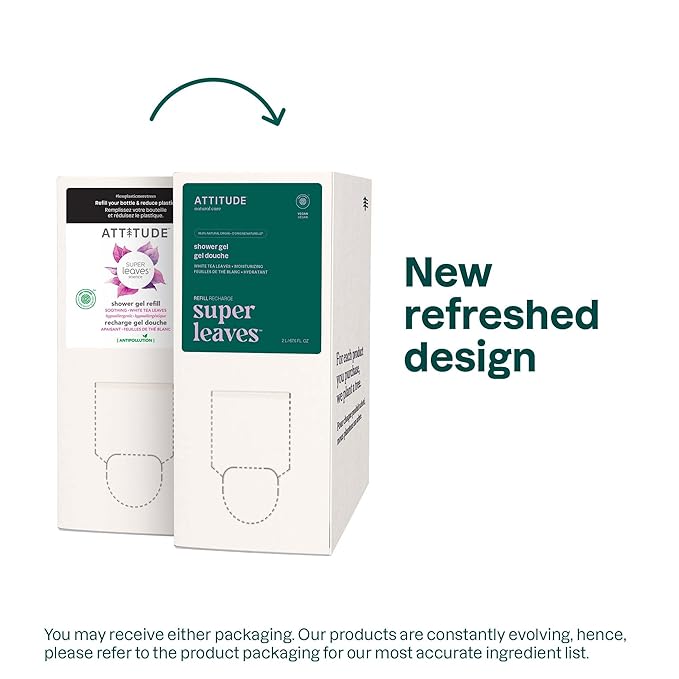 ATTITUDE Body Wash, EWG Verified Shower Gel, Dermatologically Tested, Plant and Mineral-Based, Vegan Personal Care Products, White Tea Leaves, Bulk Refill, 67.6 Fl Oz