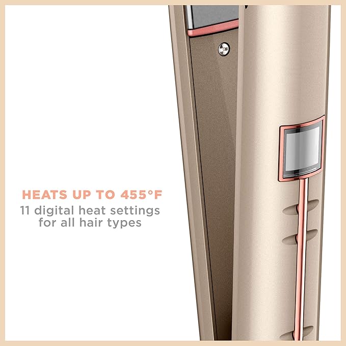 - Frizz Free Titanium Ceramic Flat Iron: With 11 heat settings, the 1 inch titanium ceramic floating plates provide even heat, eliminate gaps, and get close to the roots for ultra straight styles