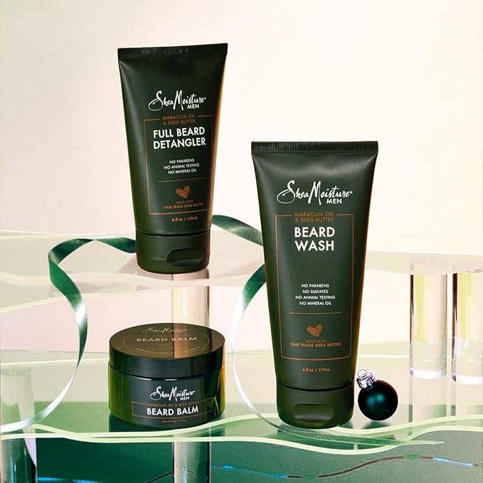 - FULL BEARD CARE: This grooming set, featuring certified organic Fair Trade shea butter, helps refresh a man’s full beard — from washing to detangling.