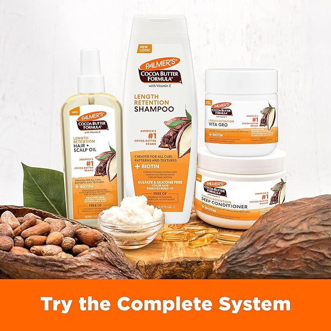 Palmer's Cocoa Butter & Biotin Length Retention Deep Conditioner, Strengthen, Nourish and Restore Elasticity and Shine, Suitable for All Curly Hair Patterns 8.5 Ounce
