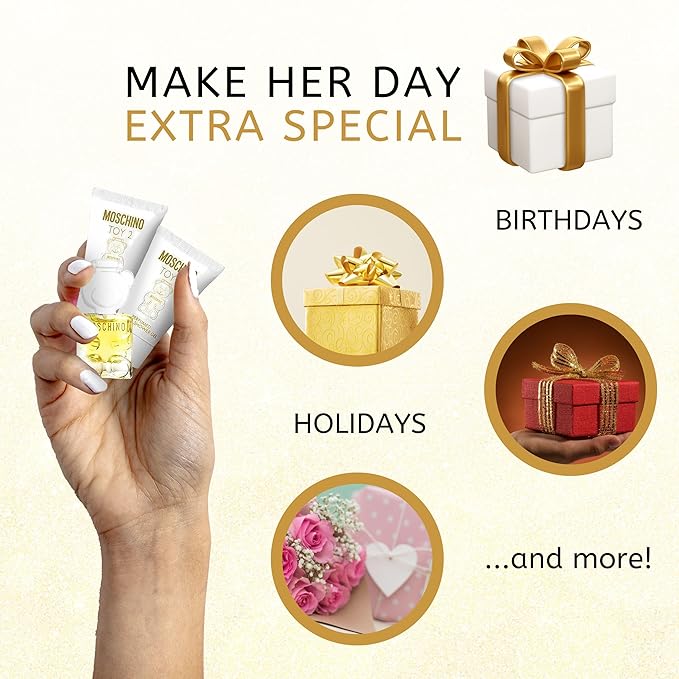 - TOY 2 TRIO FRAGRANCE – Includes Mini EDP Spray 0.17 fl ounce, Body Lotion 0.80 fl ounce, and Shower Gel 0.80 fl ounce.