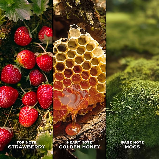 - Top Notes: Pear, Strawberry, Bergamot Heart Notes: Jasmine, Rose Buds, Honey Base Notes: Benzoin, Moss, Vanilla, Musks