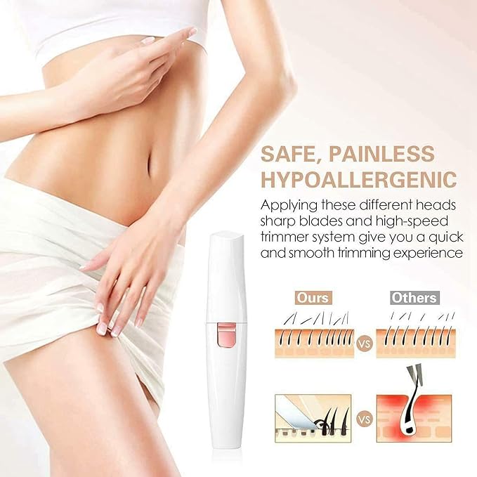 - [Effective & Flawless Facial Hair Removal] High quality stainless blades works well for your facial fine hair. Keep your skin smoothy and Refreshing.This eyebrow trimmer is safe for women with hypoallergenic skin, removing hair with precision and gentleness without causing nicks,cuts or pain
