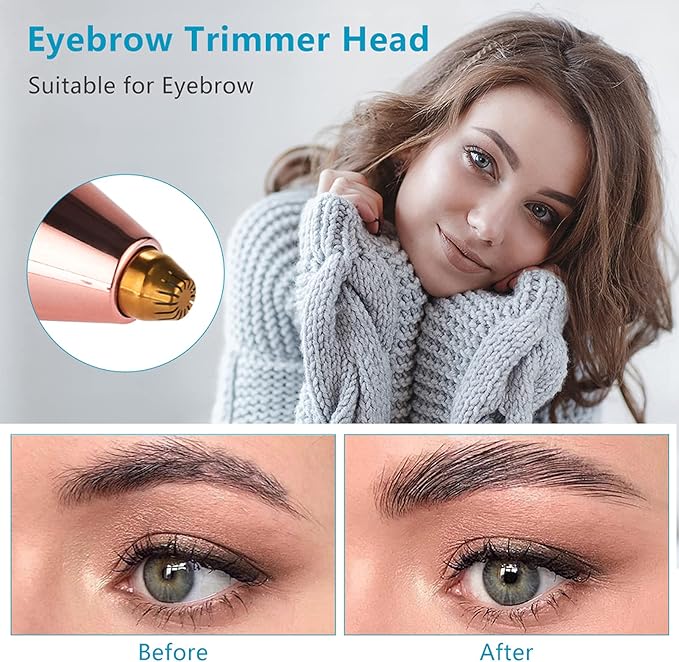 - [Easy to Clean & Precise Eyebrow Trimmer] 1*Machine, 1*Eyebrow Trimmer Head, 1*Shaver Head, 1*Cleaning Brush, 1*USB Cable. Waterproof removable rotary cutter head. Keep the hair remover clean and safety. One button to use