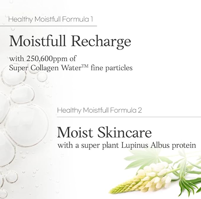 - The small particles of the SUPER COLLAGEN WATER (Hydrolyzed Collagen) in the Moistfull Facial Toner makes skin full of firming moisture and feeling bouncy