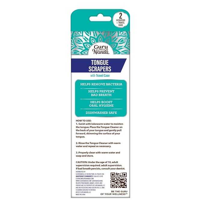 - HELPS TO ELIMINATE & PREVENT BAD BREATH: Scraping your tongue twice a day is a quick and easy way to help eliminate and prevent bad breath, or halitosis. Improve your confidence by having fresher breath and overall better oral health. The Guru Nanda Tongue Scraper removes layers of gunk and old food, which promotes a healthier, better appearance to your mouth. Say goodbye to white tongue!