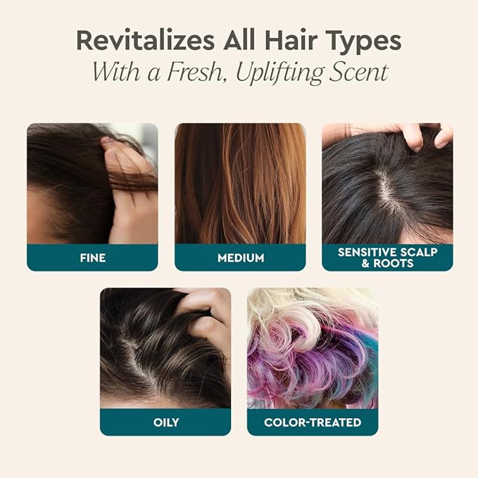 - Plant-Powered Pampering - Crafted with plant-based ingredients only, our natural dry shampoo revives hair without stripping away natural oils. Certified Benzene-free without any harsh chemicals, our microfine formula pampers from scalp to tips.
