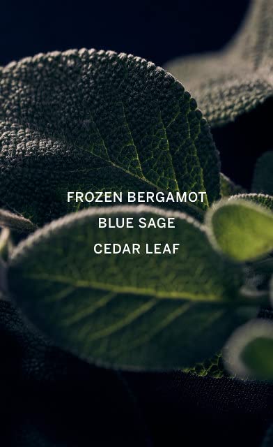 - Scent notes of frozen bergamot, blue sage, and cedar leaf.