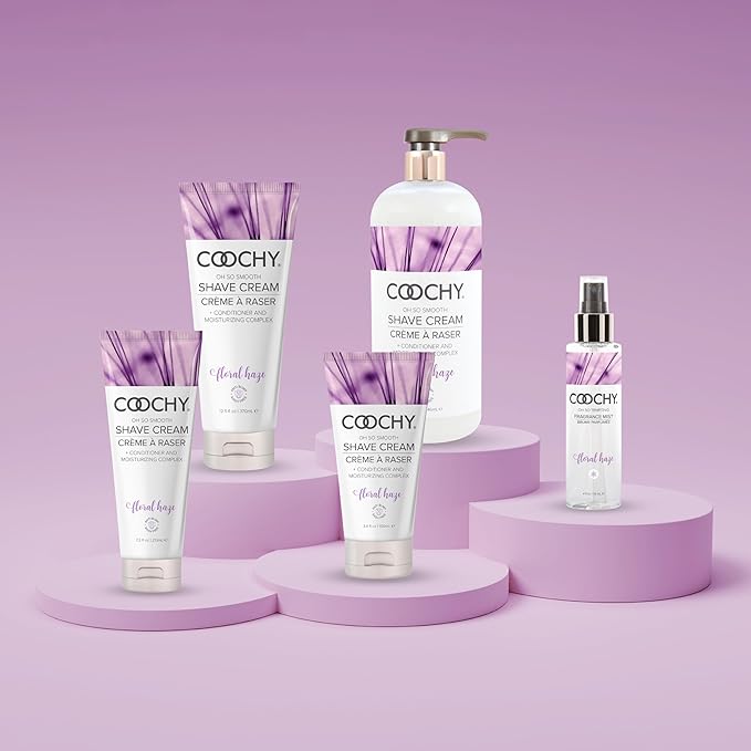 - 7 SCENTS TO CHOOSE FROM: Coochy Au Natural, Coochy Frosted Cake, Coochy Floral Haze, Coochy Island Paradise, Coochy Sweet Nectar, Coochy Peachy Keen, Coochy Key Lime Pie. COOCHY does not contain unnecessary foaming agents. Tip: As with any shave cream for women, soak skin and exfoliate before shaving.