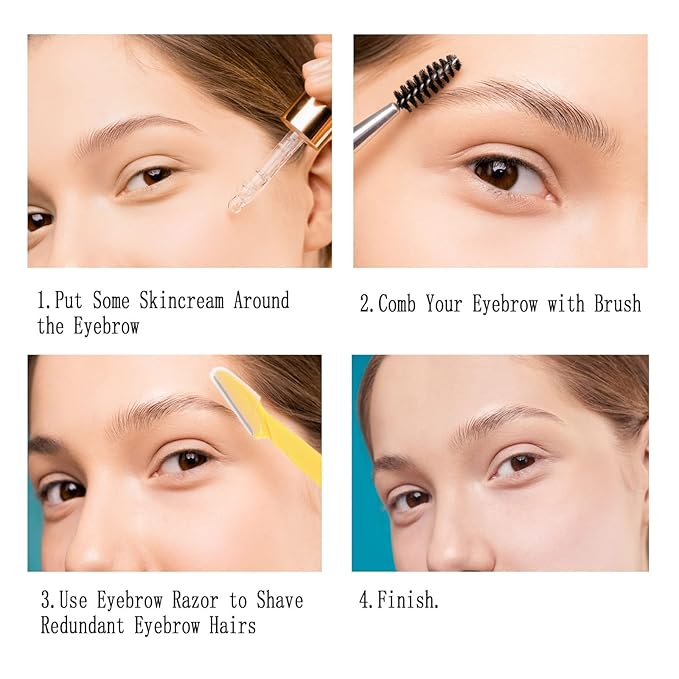 - eyebrow+razor Packaging: 64 pieces eyebrow razor shaver, face razors for women dermaplane. 4 different colors dermaplaning tool can shape eyebrows, remove fine hairs and other unnecessary hairs. blue, pink, yellow, black,16 PCS per color. Facial razors can be used not only by women but also by men. Make eyebrow stylish and create perfect eyebrows. eyebrow shavers Helping remove eyebrows, face fine hair, and other hair. Different color eyebrows razors on different body parts: Eyebrow, Face, Hair.
