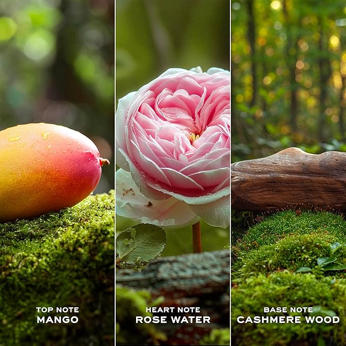 - Top Notes: Mandarin Essence, Mango & Pineapple Smell-the-taste; Heart Notes: Rosewater Firad, Orange Blossom Essence; Base Notes: Cashmere Woods