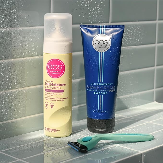 eos UltraProtect Men’s Shave Cream- Blue Surf, 24-Hour Hydration, Non-Foaming Formula, 7 fl oz