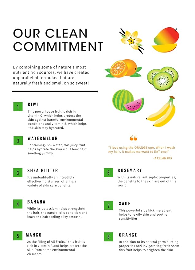 Clean Kids Naturally Tropical Orange Burst Shampoo, All-Natural, Gluten-free, Vegan, and Cruelty-free, Paraben-Free, EWG Verified, 16 oz (2 Bottles)
