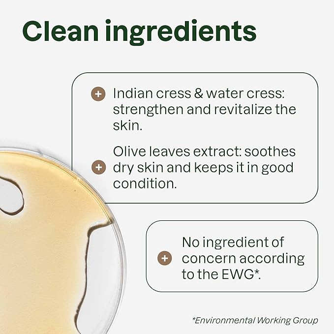 - NATURALLY SOURCED INGREDIENTS: Made with 98.8% naturally sourced ingredients* including an olive leaf extract that soothes dry skin and helps restore suppleness and firmness, as well as watercress and Indian cress extracts known to revitalize dry skin and restore the skin’s suppleness *According to ISO 16128 standards