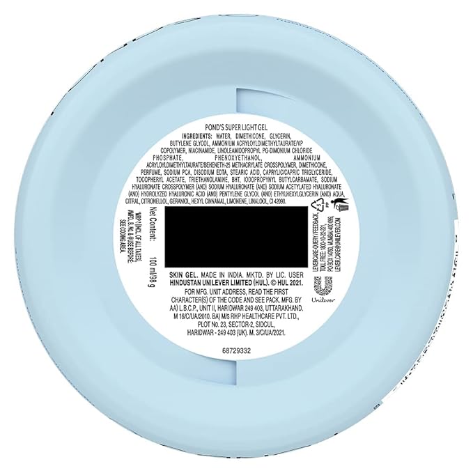 ponds Super Light Gel Oil Free Face Moisturizer 100 ml, With Hyaluronic Acid & Vitamin E for Fresh Glowing Skin & 24 hr Hydration - Daily Use
