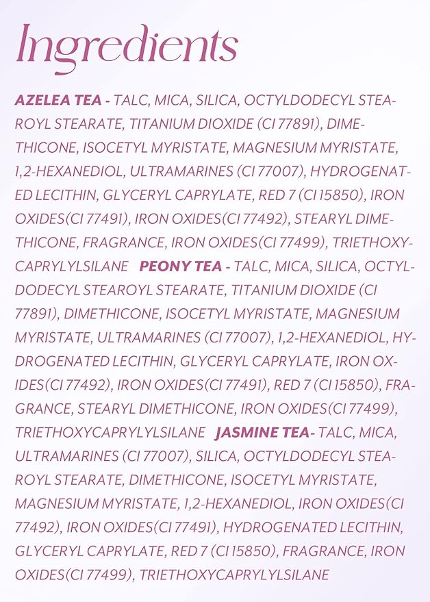- FALL IN LOVE WITH BLOSSOM TEA: I'm Afternoon Tea Blusher Palette new edition in Blossom Tea Blended shade is a cool tone blusher that make your cheeks radiant like a flower with a subtle floral scent. Comes in 11.4 g / 0.4 OZ.