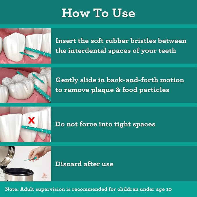 - Effortlessly navigate between teeth, gently massaging gums. Avoid the urge to force into tight spaces, ensuring a safe, comfortable, and thorough clean each time you use our interdental picks.