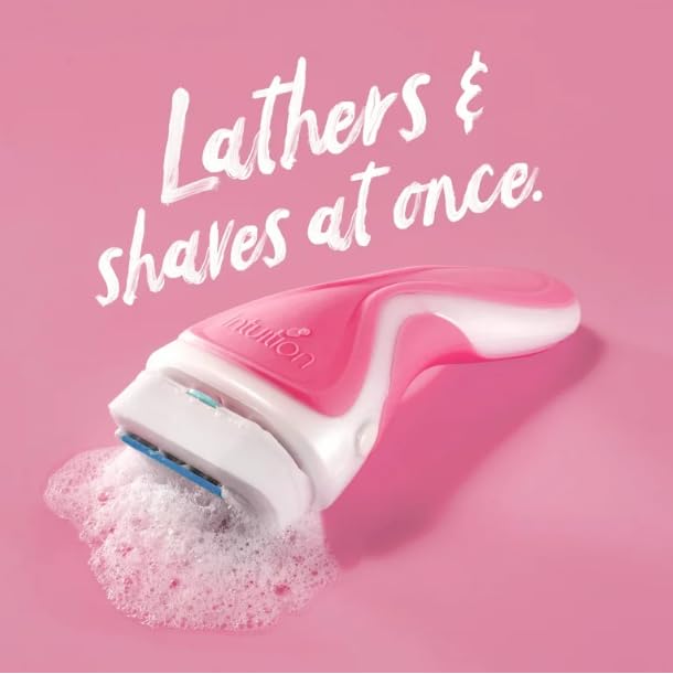 - Schick Intuition Sweet Water Lily lathers and moisturizes during shaving in one step. 4 blades surrounded by a pomegranate extract formulated conditioning solid with a fresh floral scent