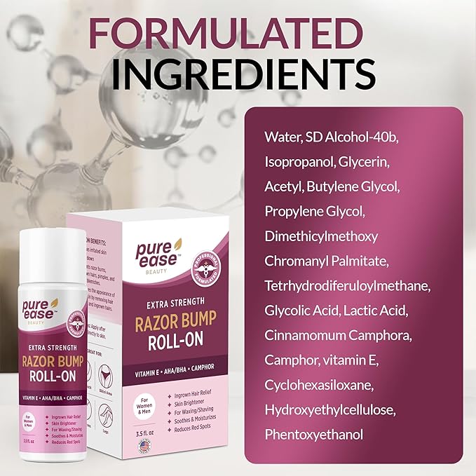 - Product Benefits : ['Provides razor bump and burn relief, soothes moisturizes skin, reduces redness, treats ingrown hairs, brightens removes dark spots, cools down inflammation, prevents future burns, pimples other blemishes.'] ['Provides razor bump and burn relief, soothes moisturizes skin, reduces redness, treats ingrown hairs, brightens removes dark spots, cools down inflammation, prevents future burns, pimples other blemishes.']