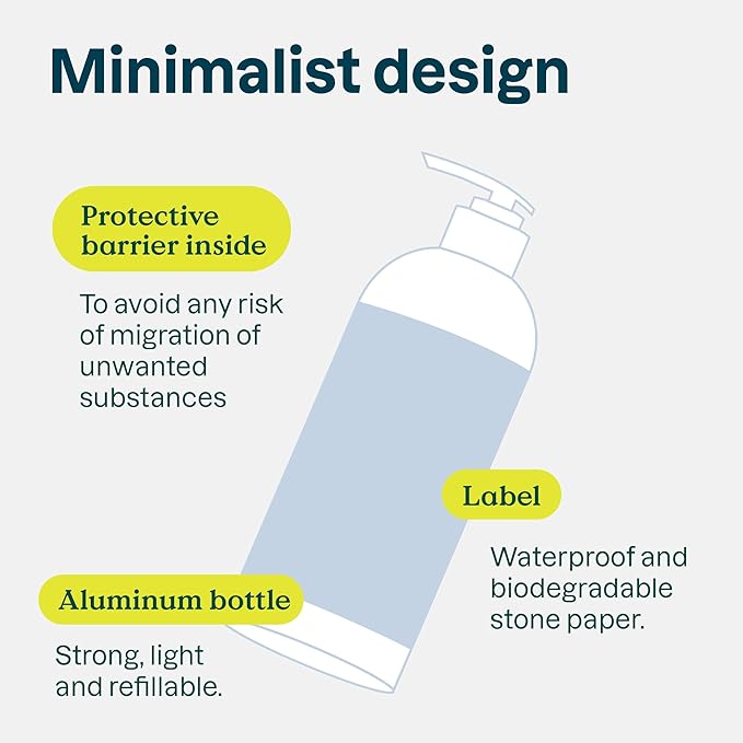 - RESPONSIBLE PACKAGING: Aluminum bottle with reusable pump for endless refilling