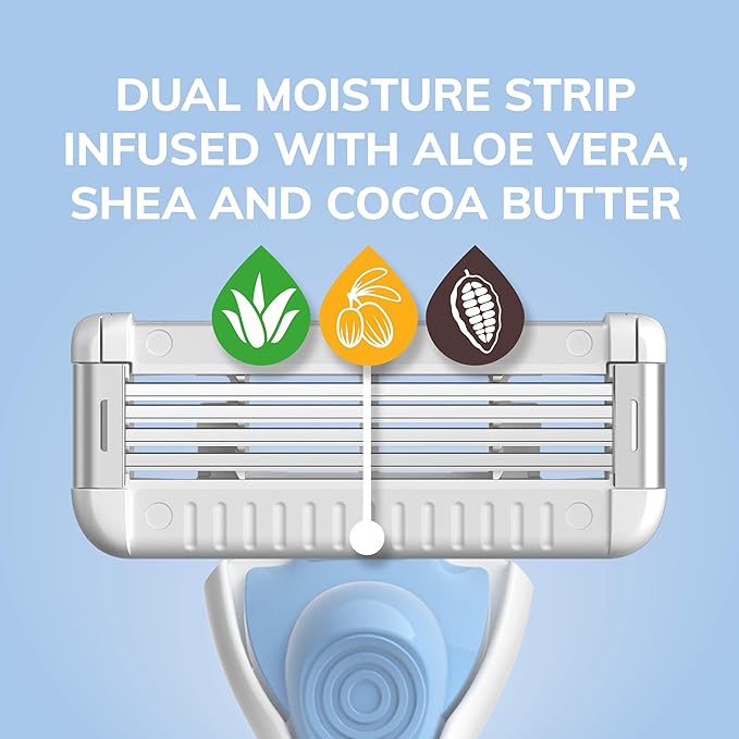 - Shaver for women with pivoting head, plus dual moisture strips infused with aloe vera, shea and cocoa butter