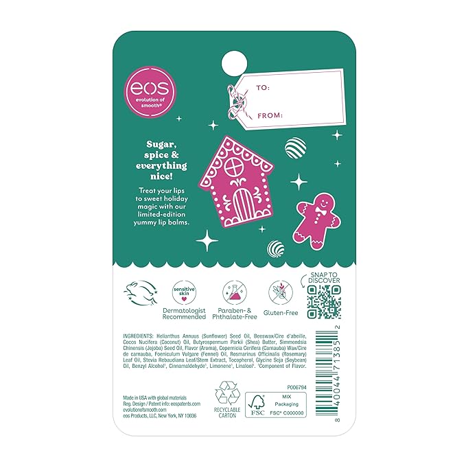 eos Holiday Lip Balm- Iced Gingerbread, Milk & Cookies, Limited-Edition Lip Care, Stocking Stuffers, Holiday Gift Ideas, 0.14 oz, 2-Pack
