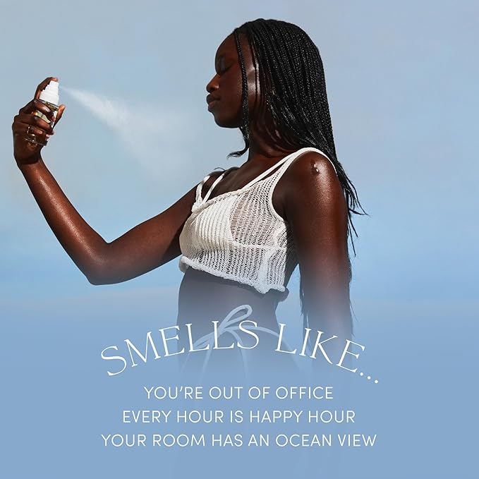 - Not a Basic Beach - This hair and body spray contains notes of Dragon Fruit, Orange Blossom, Tuberose & Musk, meaning vacay is only a spray a-OUAI.