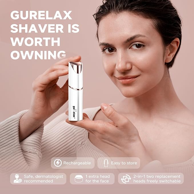 - 【With LED Light&Easy to Clean】Its perfect design plus the built-in LED light allows you to follow every curve of the body and make sure you won't miss any hair. Use the brush in the hair remover for face can to quickly and easily remove hair. The detachableblade head can be cleaned under running water. You’re going to love the amazing skincare & beauty results you achieve with guRelax womens facial hair remover.