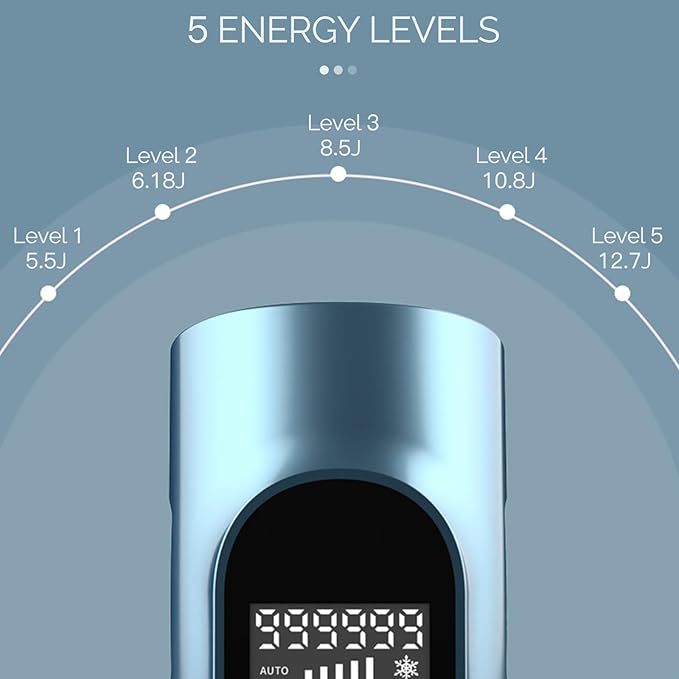 - Five Power Levels: Featuring 5 adjustable energy levels, this device carefully divides energy to accommodate different skin types and treatment areas, especially sensitive skin; Start at level 1 and gradually increase according to your skin’s adaptability