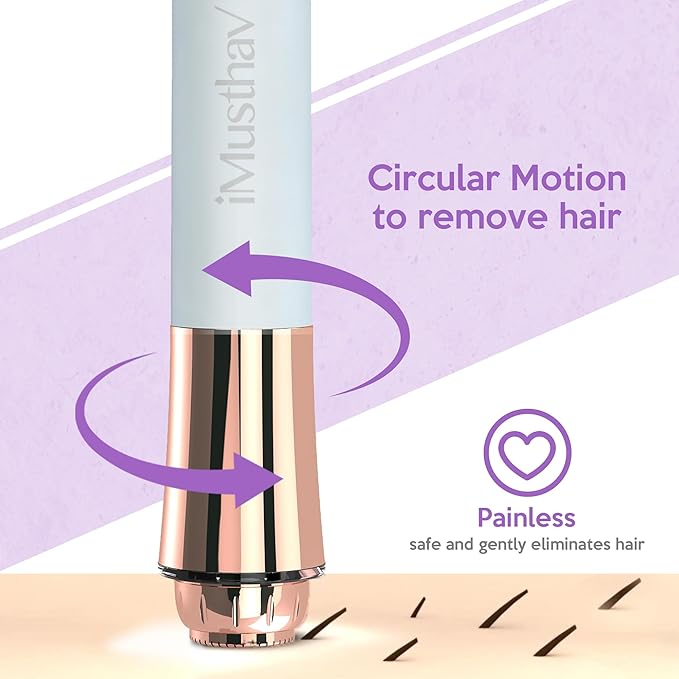 - ✨iMusthav Stylishly Portable and Compact: Resembling a lipstick, this facial hair remover device for women combines elegance with practicality. Its compact design enables effortless storage in a makeup bag, making it ideal for use at home or while traveling.