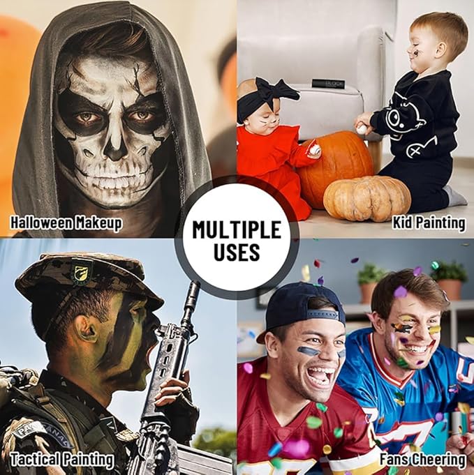 - Can be use for face eyes lips neck arm, If you like, it can be your body paint stick, for you, your children, family, friends as a makeup pen, painted their favorite color, for Halloween, party, sport game.