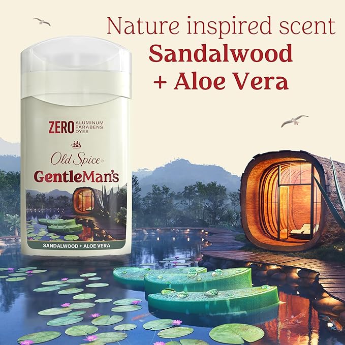 Old Spice GentleMan's Aluminum Free Dry Feel Deodorant for Men, 24/7 Lasting Freshness, Gentle on Skin with Skin Conditioners, Sandlewood + Aloe Scent, 3.0 oz