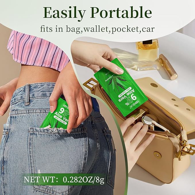 - 【99% Pure Aloe Vera Gel】This set of aloe vera gel has 200 packs,each pack is 0.282oz,each pack of aloe vera gel is individually packaged,which is very suitable for carrying around,when you use these aloe vera gel,you will feel very relaxed and cool,it quickly absorbed,and free of any sticky residue,leaving your skin moisturized and smooth