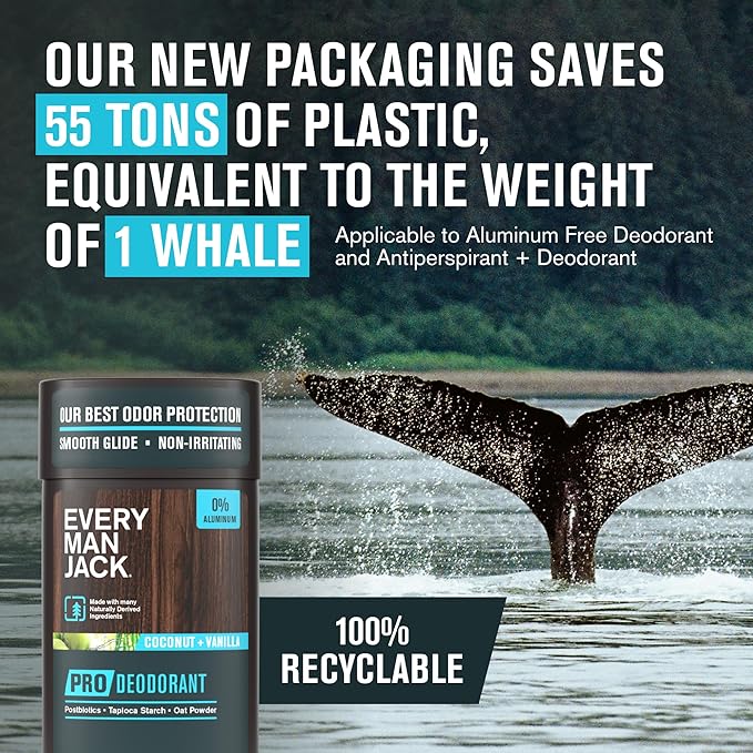 Every Man Jack Men's Pro Deodorant - 48-Hour Odor Defense Blend - Aluminum Free - Contains Postbiotics, Tapioca Stach & Oat Powder - Coconut + Vanilla Scent - 2.6 oz (1 Pack)