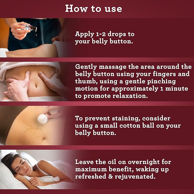 - EASY-TO-USE & MESS-FREE: Simply apply a few drops into your navel before bedtime or as part of your self-care routine for optimal benefits.