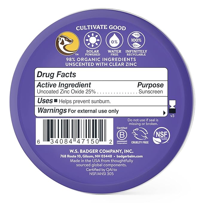 - SUSTAINABLE PLASTIC FREE SUNSCREEN: Comes in a metal tin and has no synthetic ingredients and is cruelty free . Made with 100% solar power in the USA by a women-owned family business