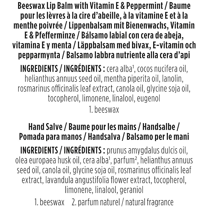 - MOISTURIZING PRODUCTS: Lip balm richly moisturizes and softens dry lips with nutrient-rich botanicals; and the hand salve moisturizes dry skin with botanical oil and responsibly sourced beeswax